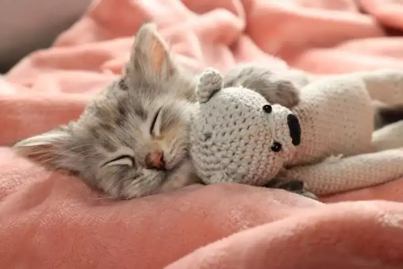 Leg de mand van uw kitten op een gezellige, rustig plaats met een deken en zorg ervoor dat hij toegang heeft tot zijn water-, voer- en kattenbak. U kunt het slaappatroon van uw kitten bepalen door het licht uit te doen, maar in de eerste nacht kunt u een nachtlampje laten branden zodat hij kan wennen aan de omgeving. Voor hun gezondheid en welzijn hebben kittens veel slaap nodig in een rustige omgeving waar ze zich kunnen ontspannen en zich veilig voelen. Uw kitten slaapt mogelijk ongeveer 20 uur van de 24 uur en heeft mogelijk als volwassen kat nog 18 uur slaap nodig.